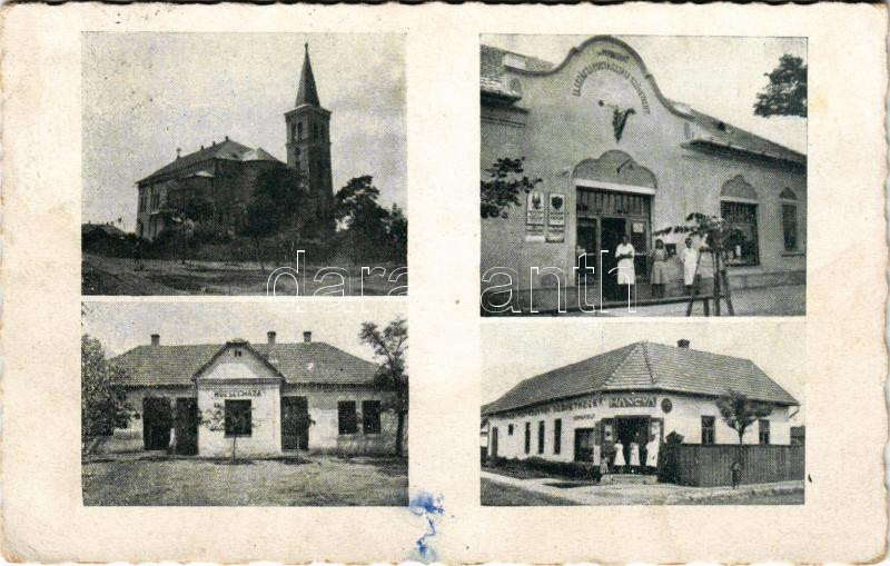 1944 Újszász, Községháza, templom, Hangya fogyasztási szövetkezet üzlete és saját kiadása (EB)