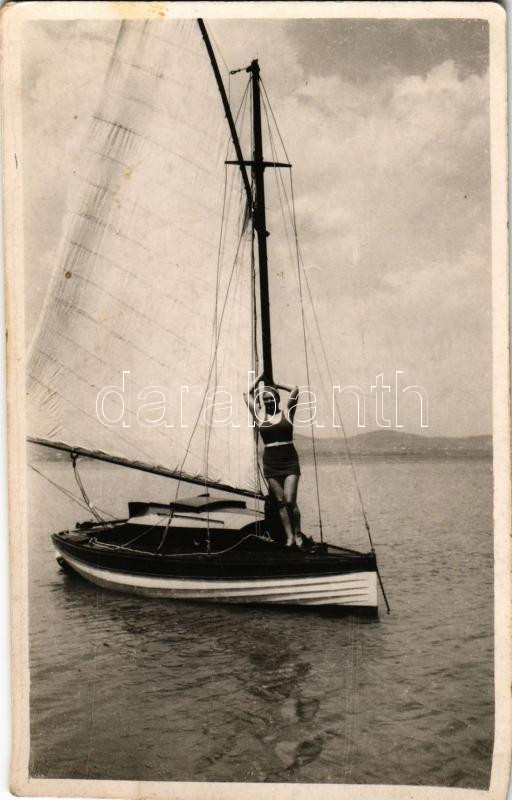 Balaton, fürdőruhás hölgy vitorlással. photo (fl)