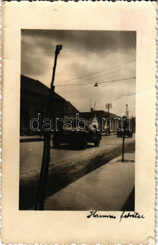 Dorog, Felvidékre bevonuló katonák átvonulása páncélautókkal Dorogon. photo (fa)