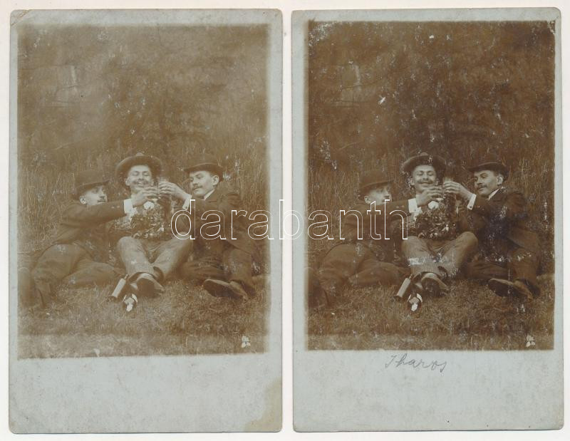 Iharos - 6 db RÉGI fotólap: italozó társaság. photo