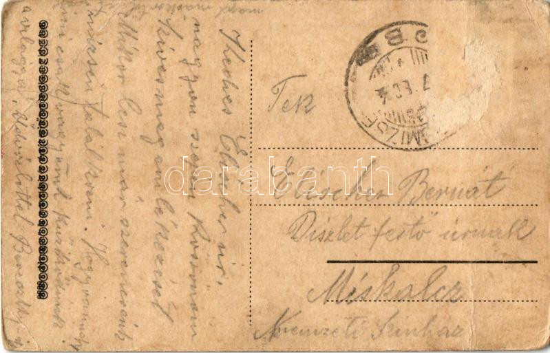 Kecskemét, Nagytemplom, piac. A képeslap címzettje Elischer Bernát, a Miskolci Nemzeti Színház díszletfestője (Rb)