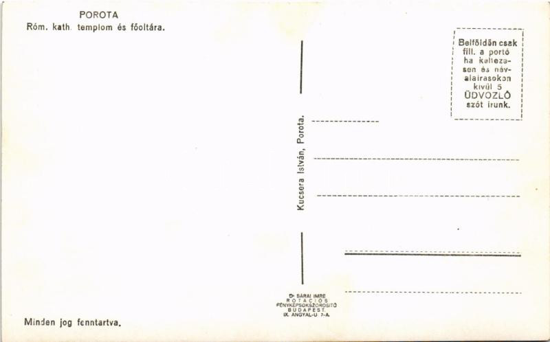 Porota (Borota), római katolikus templom és főoltára, belső. Kucsera István kiadása (fl)
