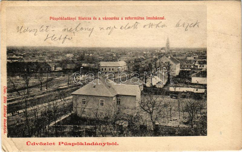 Püspökladány, Fő utca és városrész a református imaházzal. Özv. Illés Elekné kiadása (EB)