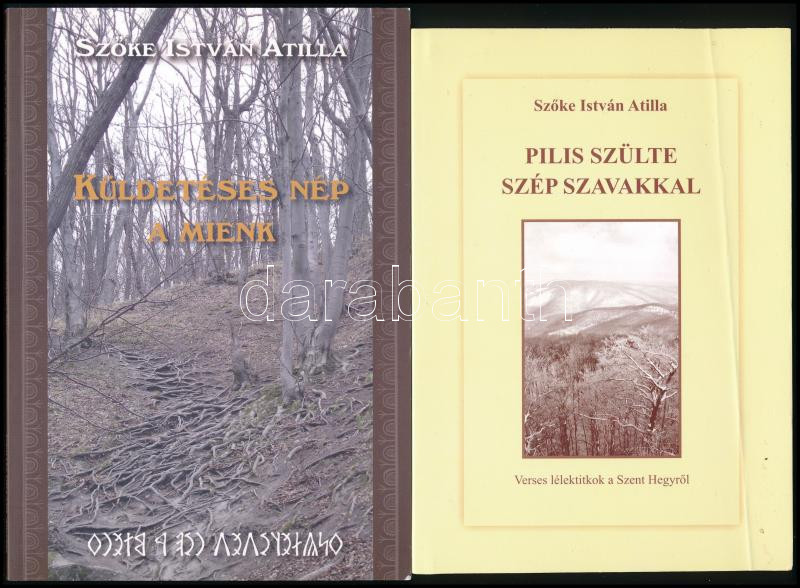 2 db - Szőke István Attila: Küldetéses nap a miénk. 2013, Koronás Kerecsen Kiadó. + Pilis szülte szép szavakkal. Verses lélektitok a Szent Hegyről. 2007, Kárpátfény-Műhely. Papírkötés, egyik borítóján törésnyom.