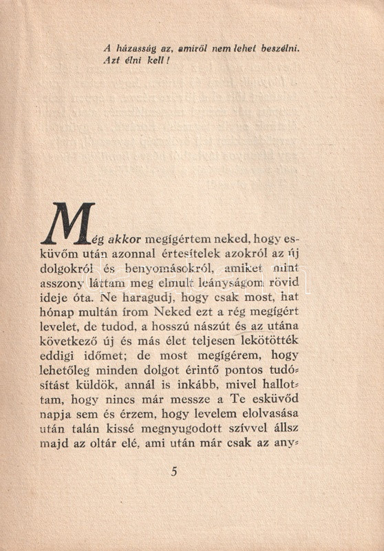 Áldott tavaszok. Asszonyi levél. Írta: az Asszony.