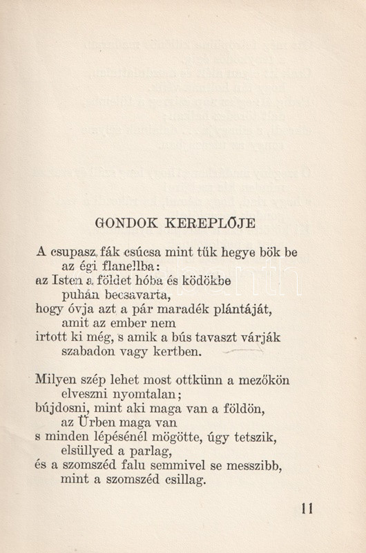 Babits Mihály életében megjelent utolsó verseskötete, benne a XX. század lírájának fontos szövegeivel: a "Vers a csirkeház mellől", a "Mint különös hírmondó" és a "Csak posta voltál" című versekkel.