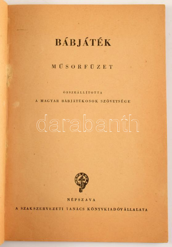 Bábjáték műsorfüzet. Összeáll.: a Magyar Bábjátékosok Szövetsége. Bp., 1950, Népszava, 112 p. Kiadói papírkötés, a gerincen kis sérüléssel.