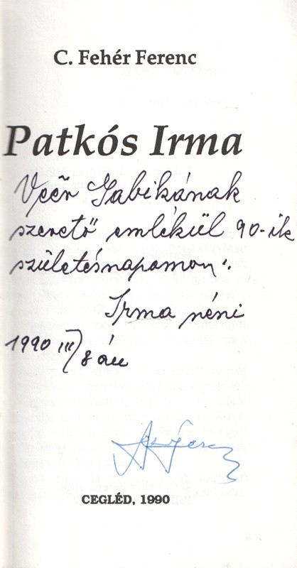 Patkós Irma. (A színművésznő által dedikált példány.)