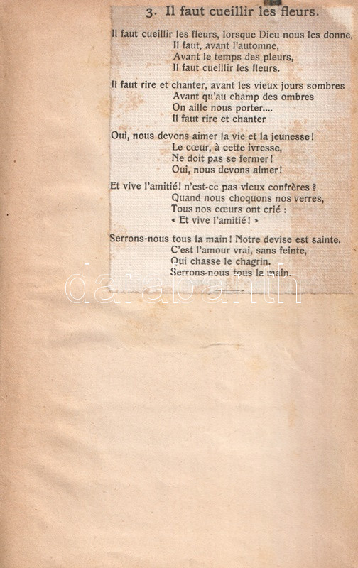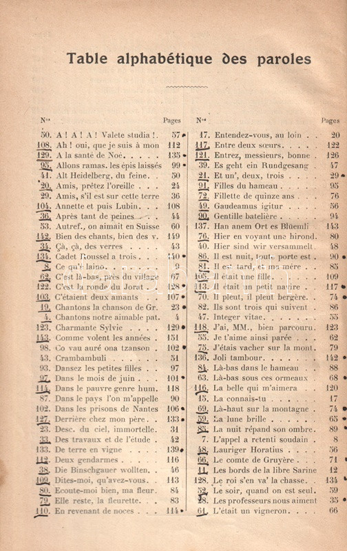 Chansonnier des Zofingiens de la Suisse romande. (A zofingeni svájci hazafias diáktestvériség francia nyelvű daloskönyve, a diáktestvériség aktuális tagsága néhány tagjának aláírásával.)