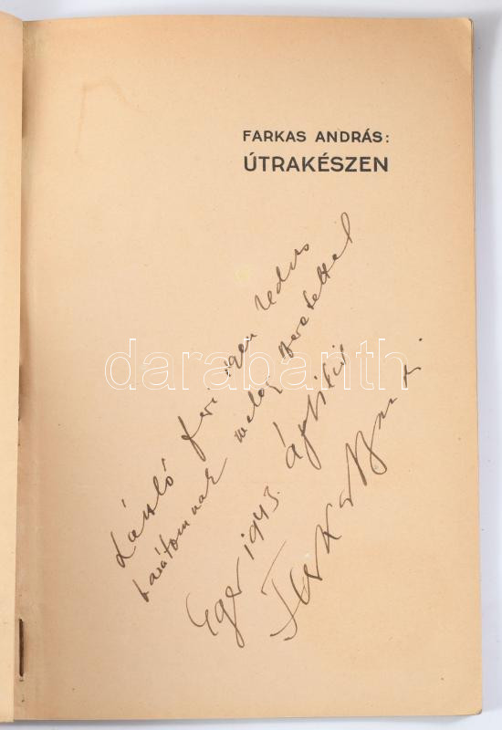 Farkas András: Útrakészen. DEDIKÁLT! 1943. Kiadói papírkötés, kopottas állapotban.