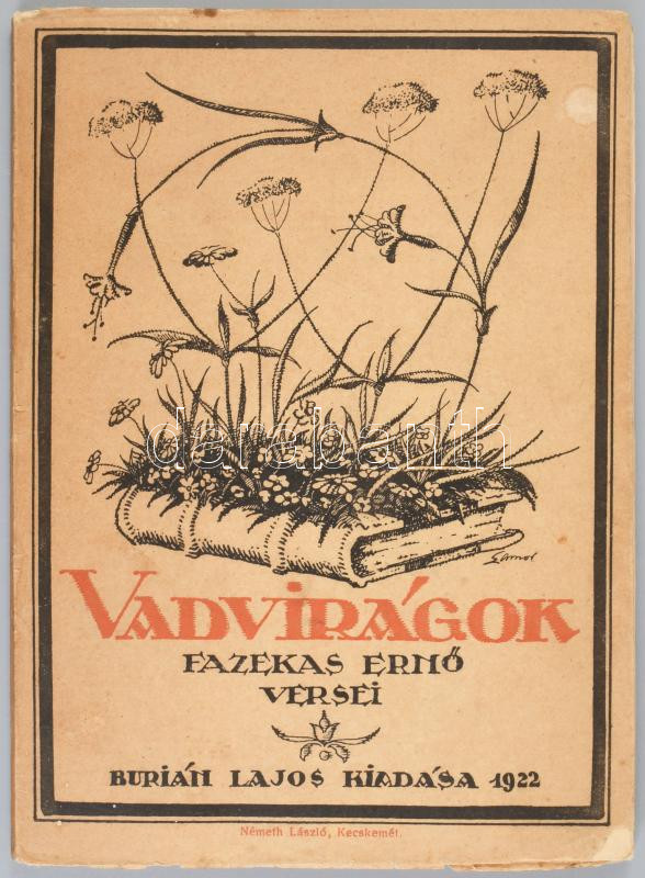 Fazekas Ernő: Vadvirágok. Versek. Muraközy Gyula előszavával. Kecskemét, 1922, Burián Lajos, 62+[2] p. Kiadói papírkötés, kissé sérült borítóval, szétváló fűzéssel. (Ritka!)