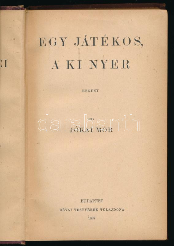 Jókai Mór: Egy játékos, aki nyer. Bp., 1897, Révai. 219p. Kiadói aranyozott, festett egészvászon kötés, aranyozott lapélek, kissé kopottas állapotban.