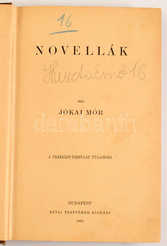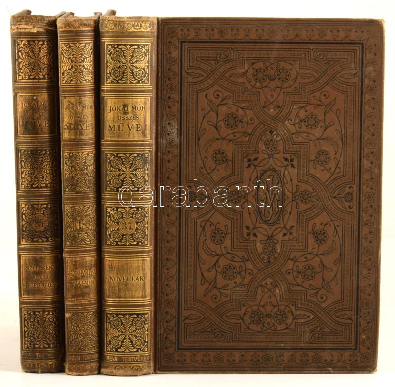 Jókai Mór összes művei - Nemzeti kiadás 3 kötete: Jókai Mór: Novellák.; Szomoru napok.; Szélcsend alatt. - Az életből ellesve. Bp., 1895-1904, Révai, 376+[4] p.; 219+[1] p.; 289+[3] p. Kiadói aranyozott gerincű egészvászon sorozatkötés, Gottermayer-kötés, vegyes állapotban.