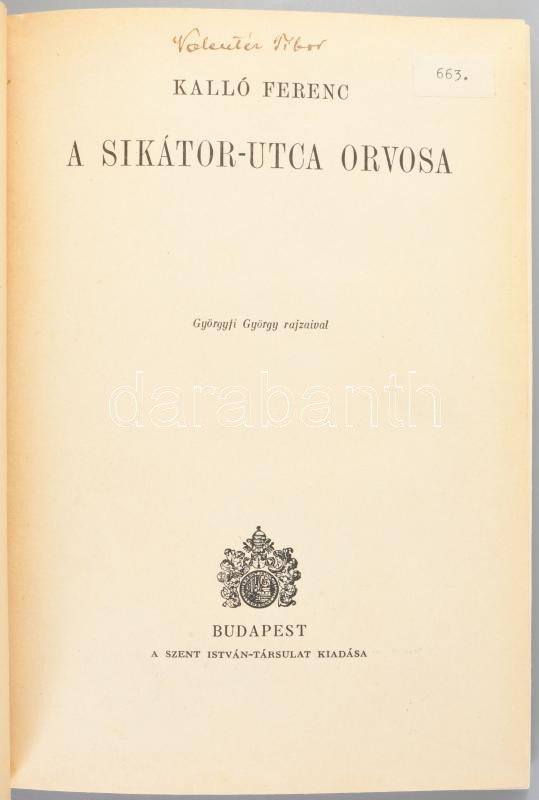 Kalló Ferenc: A Sikátor-utca orvosa. Bp., Szent István-Társulat. 123p. Györgyfi György rajzaival. Félvászon kötés, kopottas állapotban.