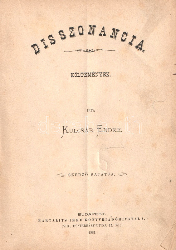 Budapest, 1881. A szerző sajátja - Bartalits Imre ny. 117 + [3] p. Egyetlen kiadás.