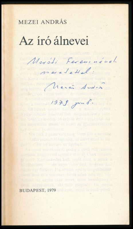 Mezei András: Az író álnevei. DEDIKÁLT! Bp., 1979, Kozmosz Könyvek. Kiadói papírkötés, első kötéstáblán törésnyom.