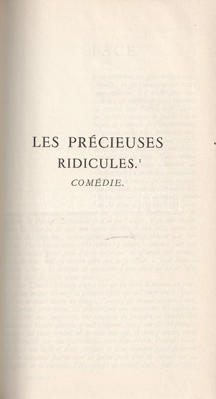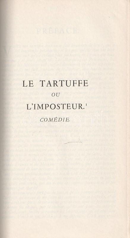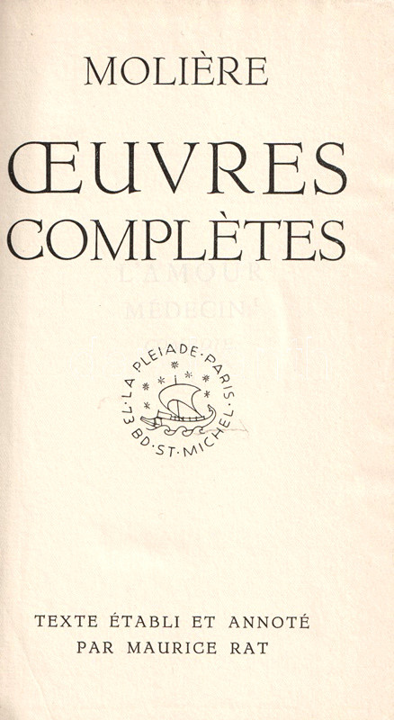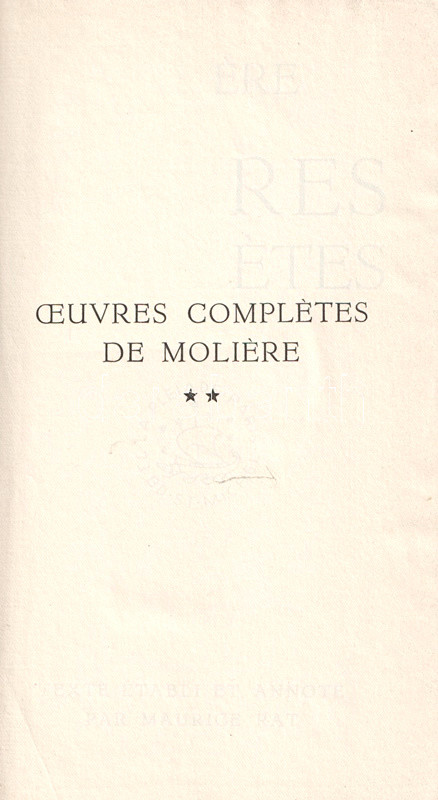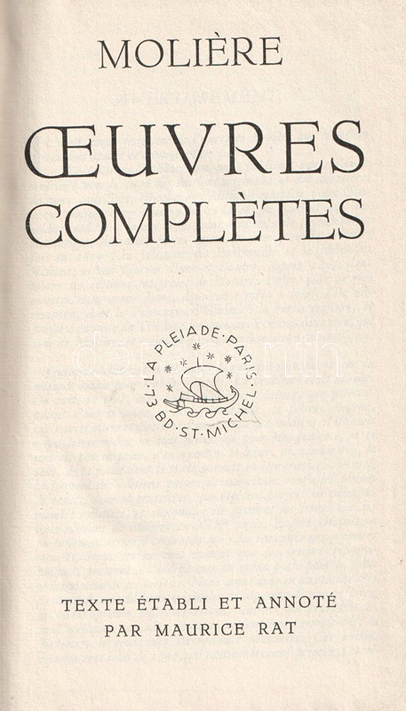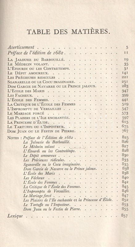 Bibliapapírra nyomott bibliofil kiadásunk Moliere (1622-1673) drámaírói életművének egészét közreadja, a színlapokon az eredeti szereposztás részleteivel, egyes drámák esetén előszavakkal, ajánlásokkal. A köteteket gondozta és a jegyzeteket írta Maurice Rat irodalomtörténész.