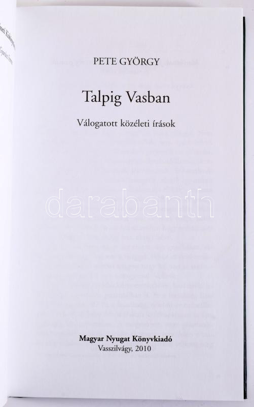Pete György: Talpig Vasban. Válogatott közéleti írások. A Magyar Nyugat Történeti Kiskönyvtára 12. Vasszilágy, 2010, Magyar Nyugat Könyvkiadó. Kiadói kartonált kötés, jó állapotban.