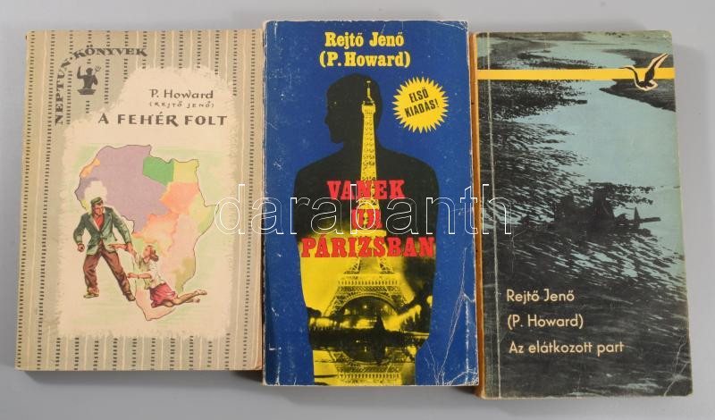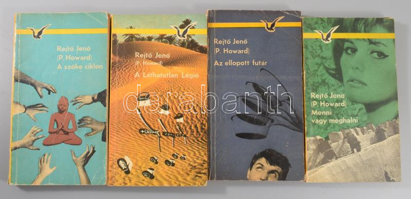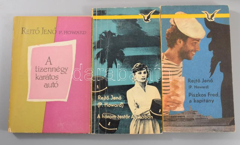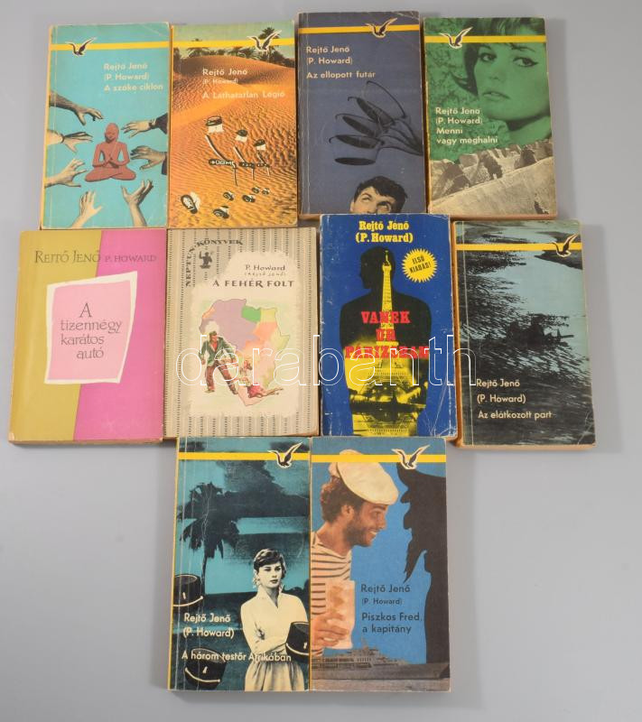 Rejtő Jenő művei, 10 db: A három testőr Afrikában, Piszkos Fred a kapitány, Az elátkozott part, A szőke ciklon, A láthatatlan légió, Az ellopott futár, Menni vagy meghalni. Vanek úr Párizsbanm, A tizennégy karátos autó, A fehér folt.