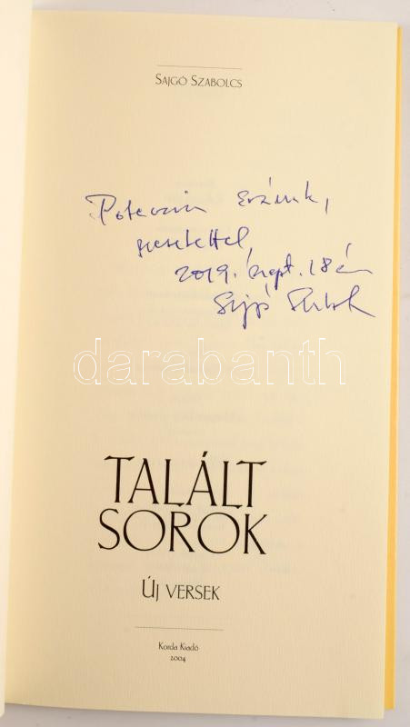 Sajgó Szabolcs: Talált sorok. Új versek. Kákonyi Júlia illusztrációival. DEDIKÁLT!Kecskemét, 2004, Korda Kiadó. Kiadói papírkötés.