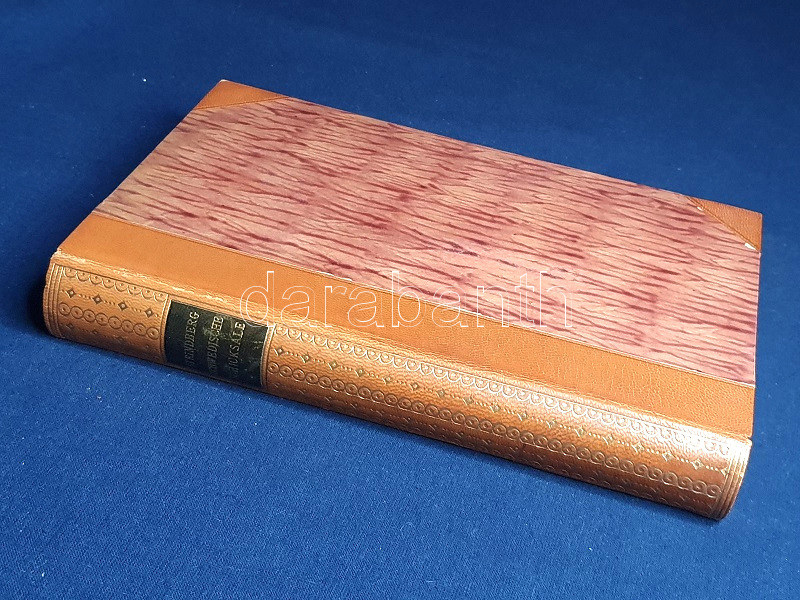 Díszesen aranyozott gerincű kiadói félbőr kötésben, az aranyozott címfelirat a gerincen fekete címkén. Szép példány.