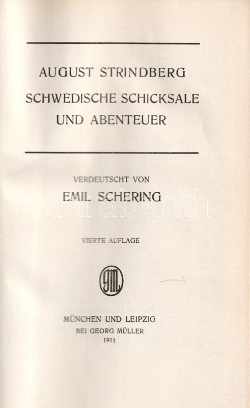 August Strindberg (1849-1912) svéd drámaíró, a századforduló egyik legtöbbet játszott szerzője, de regényíróként és novellistaként is jelentős. "Svenska öden och äfventyr" (Svéd sorsok és kalandok) címmel írt történelmi tárgyú novelláskötete meglepő erővel jeleníti meg a svéd köznép küzdelmeit, illetve a svéd udvar intrikus világát. Az eredeti nyelven először 1883-ban megjelenő kötet első német kiadása 1902-ben látott napvilágot, az életműkiadást gondozó bibliofil Georg Müller kiadó ennek szövegét vette át. Novelláskötetünk az 50 kötetes Strindberg-összkiadás részeként jelent meg, ami egyben a negyedik német kiadásnak számít.