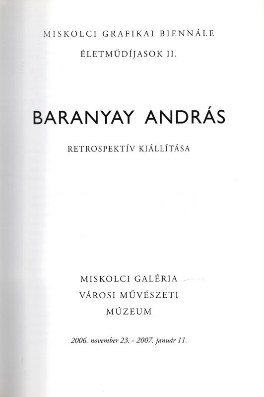 Baranyay András retrospektív kiállítása. Miskolc, 2006. november 23. - 2007. január 11. (Dedikált képzőművészeti album.)