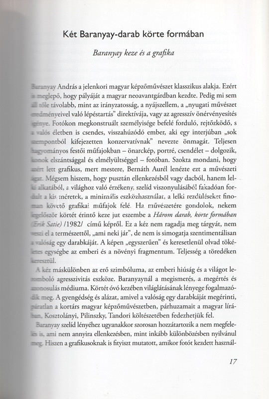 Baranyay András (1938-2016) Kossuth-díjas festő- és fotóművész, a Képzőművészeti Főiskolán Bernáth Aurél tanítványa. A kezdeti évek után hamar eltávolodott a neoavantgárdtól, sajátos hangulatú figuratív alkotásain aktok, kézportrék, önportrék, csendéletek. 1963-tól vett részt kiállításokon, a Miskolci Galériában több tárlatot is rendezett. Összesen 500 példányban készült kiállítási albumunk egész oldalas és szövegközti felvételekkel gazdagon illusztrált.