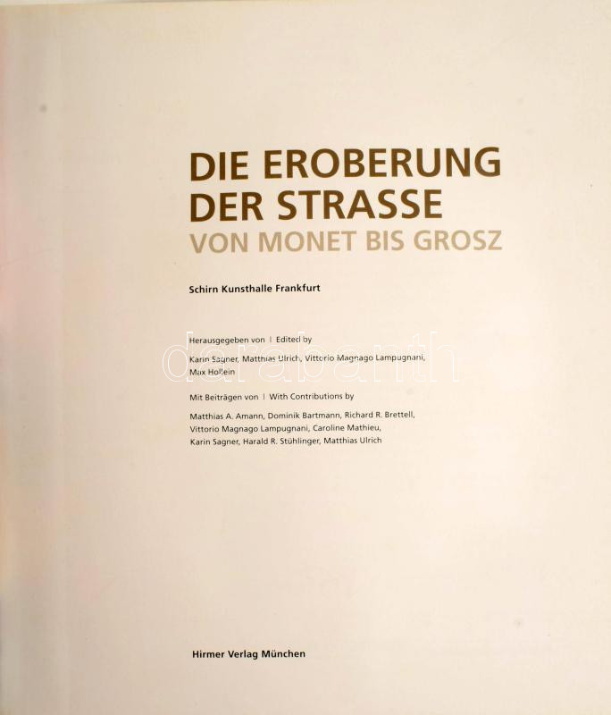 Die Eroberung der Strasse von Monet bis Grosz. Schirn Kunsthalle Frankfurt. Hrsg. /Edited by: Karin Sagner, Matthias Ulrich, Vittorio Magnago Lampugnani, Max Hollein. München, én., Hirmer. Német nyelven. Gazdag képanyaggal illusztrált. Kiadói papírkötés.
