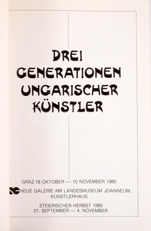 Drei Generationen Ungarischger Künstler. Graz, 1985, Neue Galerie am Landesmuseum Joanneum - Künstlerhaus. Gazdag képanyaggal. Benne: Bak Imre, Birkás Ákos, Fehér László, Halász Károly, Hencze Tamás, Jovánovics György, Kelemen Károly, Keserü Ilona, Nádler István és mások. Kiadói papírkötés.