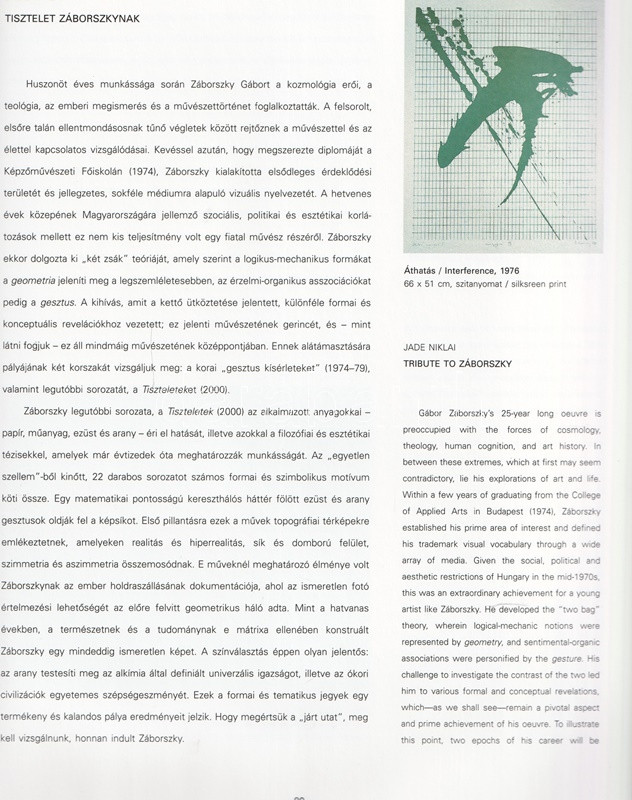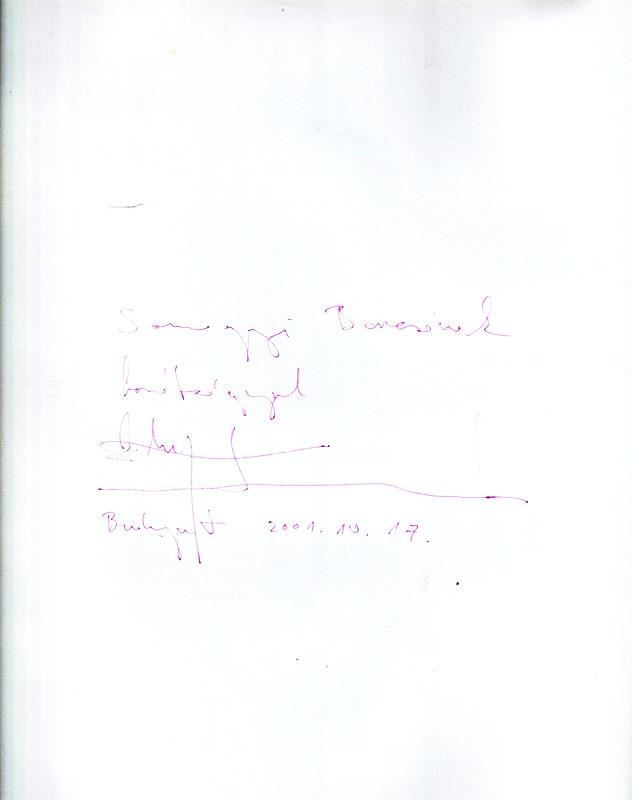 Dedikált: "Somogyi Borcsának barátsággal: Záborszky Gábor. Budapest, 2001. 10. 17."