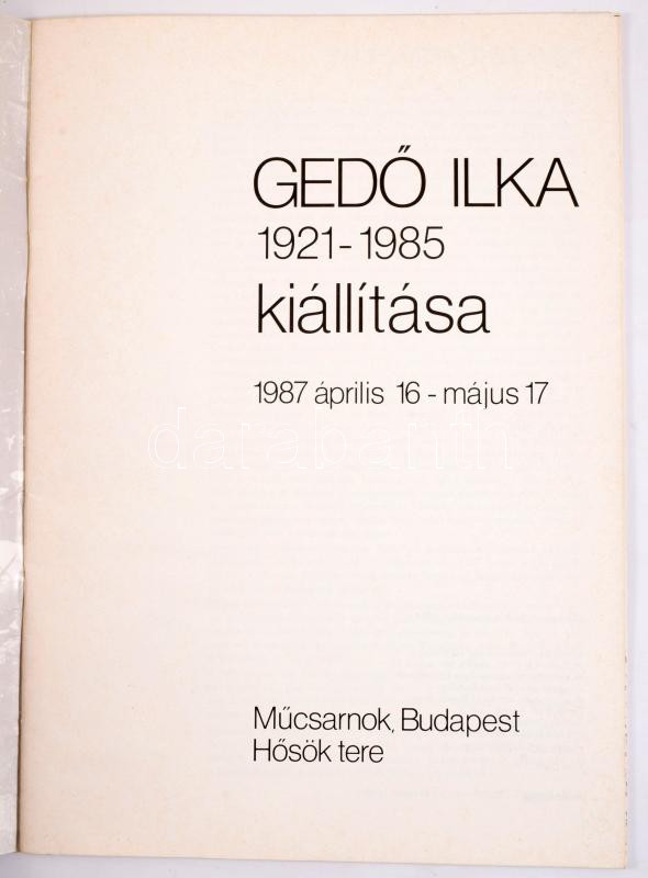 Gedő Ilka (1921-1985) kiállítása. Bp., 1987, Műcsarnok, 32 p. Kiadói papírkötés, az utolsó 4 lapon (katalógus) számos bejelöléssel és bejegyzéssel.