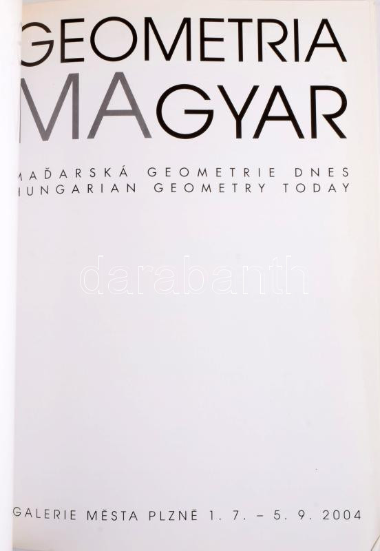 Geometria magyar. Madarska geomtrie dnes. Hungarian geometry today. Plzen, 2004. Galerie Mesta Plzne, 43+1 p. Cseh és angol nyelven. Színes képekkel, többek közt Bak Imre, Halász Károly, Maurer Dóra, Nádler István műveinek reprodukcióival illusztrált kiállítási katalógus. Kiadói papírkötés.