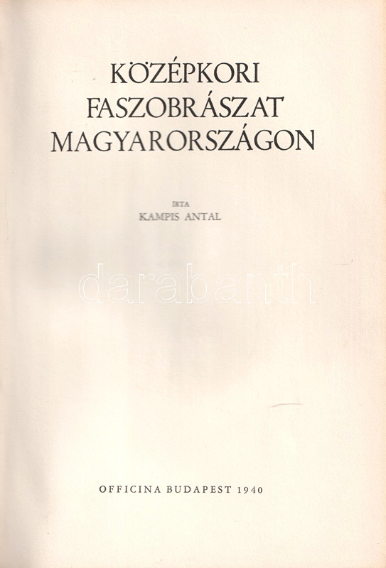 Kampis Antal (1903-1982) művészettörténész, elsősorban szakrális művészettel, azon belül is a középkori magyar faszobrászat történetével foglalkozott. Első könyvét a témában 1932-ben adta ki, jelentős további kutatás után jelent meg nagymonográfiája a témában, amely a gótikus szobrászat jelenlétét a Szepességen és a bányavárosokon kívül a Dunántúlon és Erdélyben (Nagyszebenben, Brassóban és Csíkban egyaránt) kimutatja. A téma alapvető monográfiája német és francia nyelven is megjelent. Képmelléklet a 155-308. oldal között.