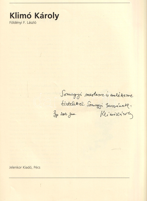 Dedikált: "Somogyi mesterre is emlékezve tisztelettel Somogyi Borcsának: Klimó Károly. Bp., 2004. jún".