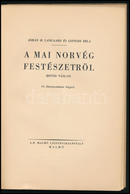 Langaard-Leffler: A mai norvég festészetről. Malmö, 1931, Lundgren Fiai. 48p. Kiadói papírkötés, gerincnél elvált, kopottas állapotban.