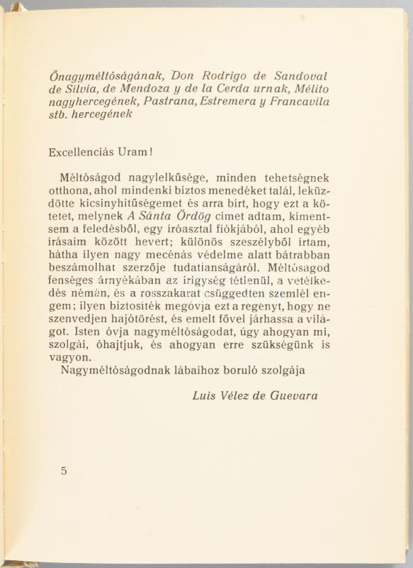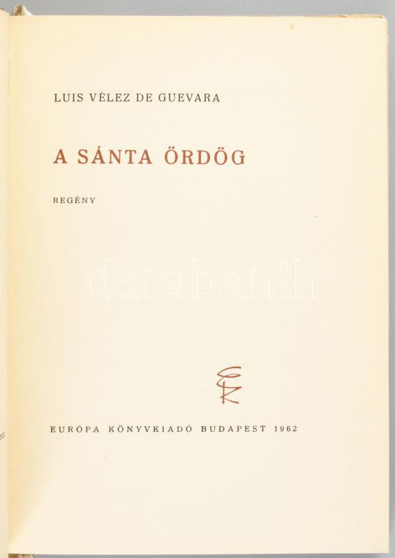 Luis Vélez de Guevara: A sánta ördög. Szegő István fordítását átdolgozta: Benyhe János. Kondor Béla eredeti rézkarcaival. Bp., 1962, Európa, 129+(3) p. + 10 t. Kiadói egészvászon-kötés, kissé sérült, ragasztott kiadói papír védőborítóban, a belső kötéstábla kissé sérült, Megjelent 5000 példányban.