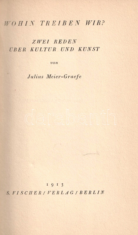 Meier-Graefe, Julius: Wohin treiben wir? Zwei Reden über Kultur und Kunst.