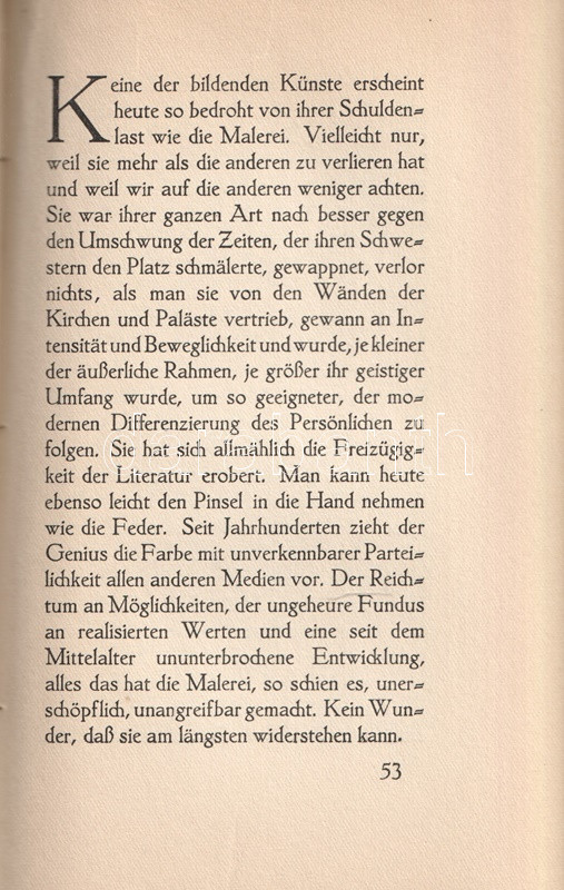 A bánáti születésű Julius Meier-Graefe (1867-1935) német művészettörténész, művészeti író, szerkesztő, szecessziós magazinok alapítója (Pan, Dekorative Kunst), műgyűjtő, galériatulajdonos. A német közönség, illetve a német szecesszió alkotói művészettörténeti írásaiból ismerték meg és értékelték újra a korábban elfelejtett festő nagyságok - Caspar David Friedrich és El Greco - munkásságát. Rövid értekezésében a művészet és a kultúra századeleji kihívásait elemzi.