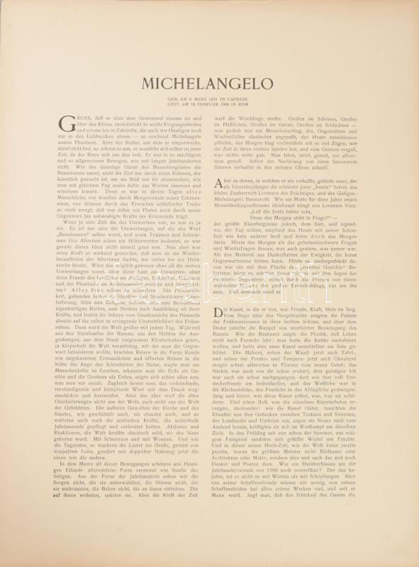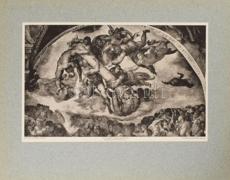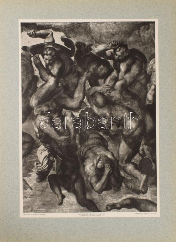 Michelangelos Hauptbilder der Sixtinadecke./Propheten und Sibyllen. Das Jüngste Gericht. Aus den Michelagelo-Mappen, Hrsg. vom Kunstwart. München,én., Kunstwart-Verlag Georg. D. W. Callwey, 3+3+3 sztl. lev.+12+12+29 t. Kiadói aranyozott fekete egészvászon mappában, kopott borítóval, sérült gerinccel, az egyik szalag elszakadt.