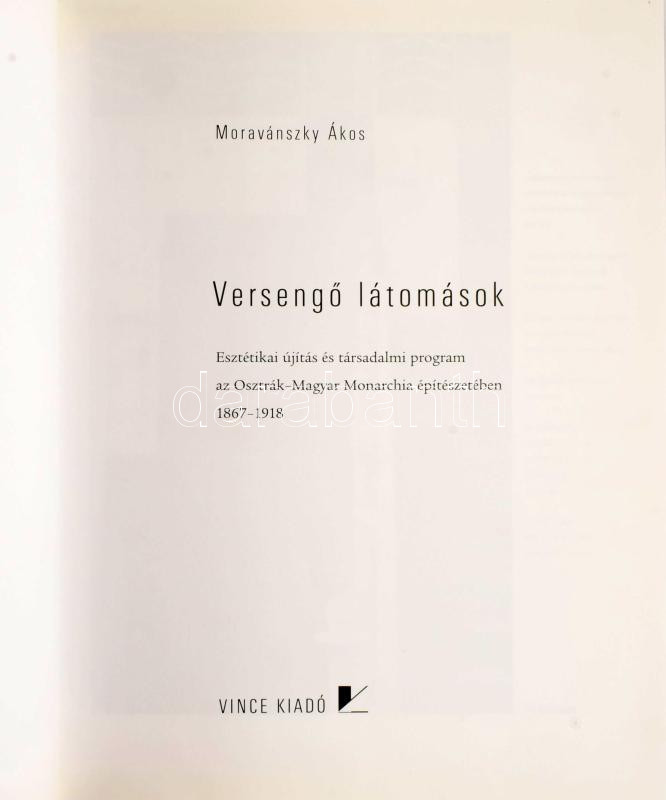 Moravánszky Ákos: Versengő látomások. Esztétikai újítás és társadalmi program az Osztrák-Magyar Monarchia építészetében 1867-1918. Bp., 1998, Vince, 415+[1] p. Gazdag képanyaggal illusztrálva. Kiadói kartonált papírkötés, kiadói papír védőborítóban.
