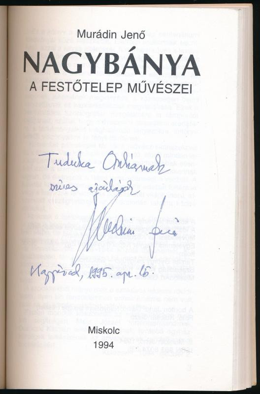 Murádin Jenő: Nagybánya. A festőtelep művészei. DEDIKÁLT! Miskolc, 1994, k.n. 109p. Első kiadás. Papírkötésben.