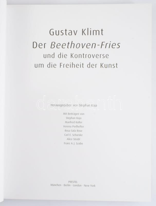 Stephan Koja (Hrsg.): Gustav Klimt: Der Beethovenfries und die Kontroverse um die Freiheit der Kunst. München, 2006, Prestel Verlag, 207+1 p. Német nyelven. Gazdag képanyaggal illusztrált. Kiadói kartonált papírkötés, kiadói papír védőborítóban.