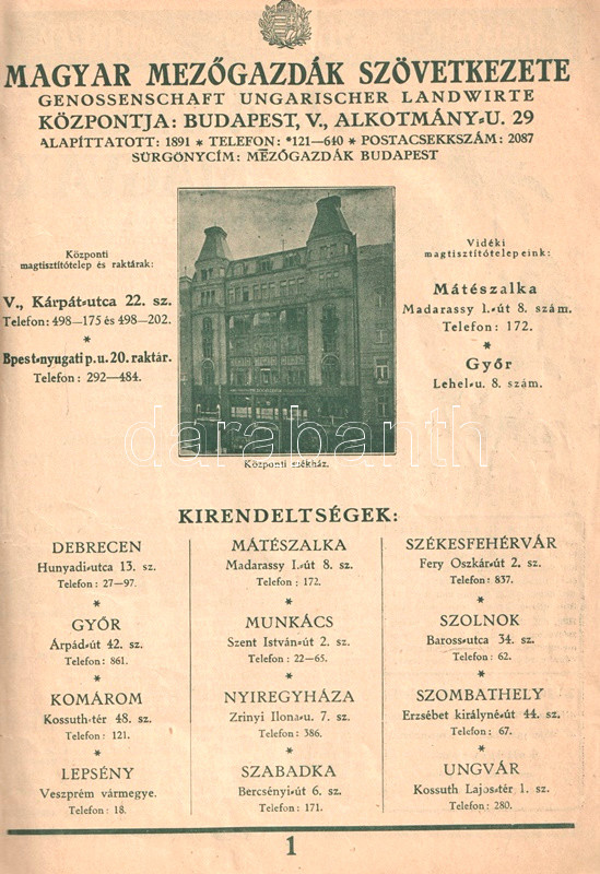 (Budapest), 1942. Magyar Mezőgazdák Szövetkezete (Pátria nyomda - Révai-nyomda). 55 + [1] p.