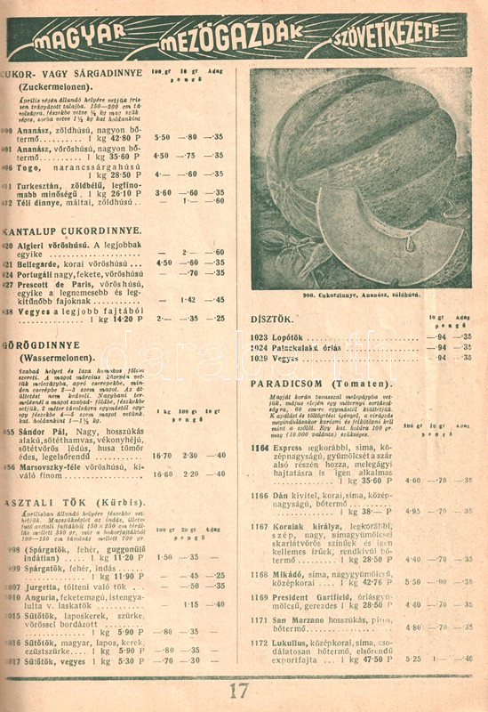 Az 1891-ben alapított Magyar Mezőgazdák Szövetkezetének képes árukatalógusa fűmag-, vetőmag- és virágmag-katalógusa, a kiadvány végén kerti szerszámok és permetezőszerek aktuális áraival.