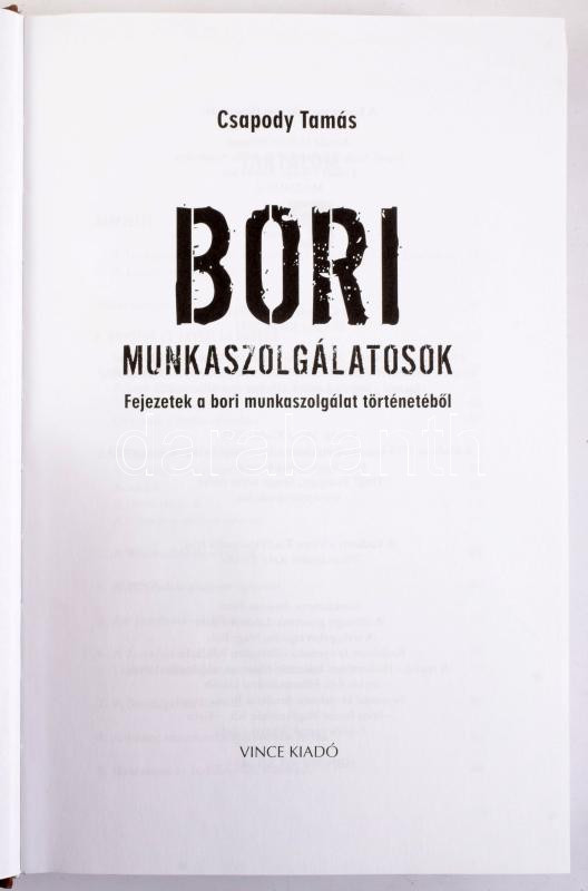 Csapody Tamás: Bori munkaszolgálatosok. Bp., 2011, Vince. Kiadói kartonált papírkötés, jó állapotban.