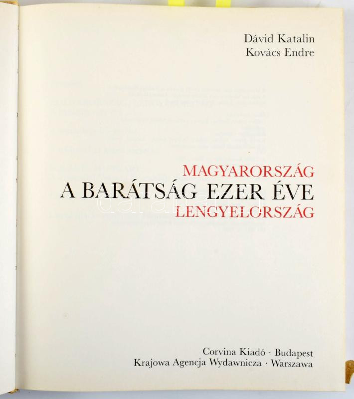 Dávid Katalin - Kovács Endre: Magyarország - Lengyelország a barátság ezer éve. Bp. - Warszawa,1978,Corvina - Krajowa Agencja Wydawnicza. Magyar és angol nyelven.