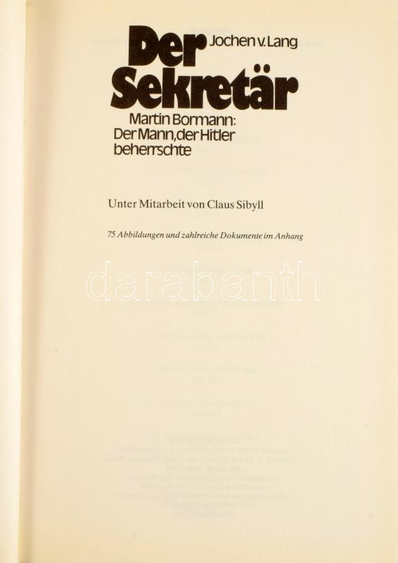 Jochen v. Lang: Der Sekretär. Martin Bormann: Der Mann, der HItler beherrschte. Unter Mitarbeit von Claus Sibyll. Herrsching, 1990, Manfred Pawlak. Német nyelven. Kiadói kartonált papírkötés.