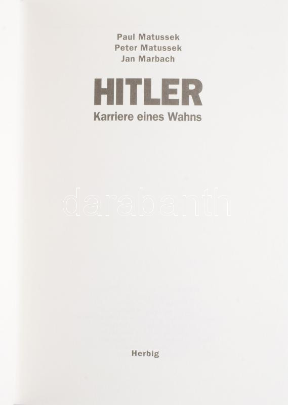 Peter Matussek-Paul Matussek-Jan Marbach: Hitler. Karriere eines Wahns. München, 2000, F. A. Herbig. Német nyelven. Kiadói egészvászon-kötés, kiadói papír védőborítóban.