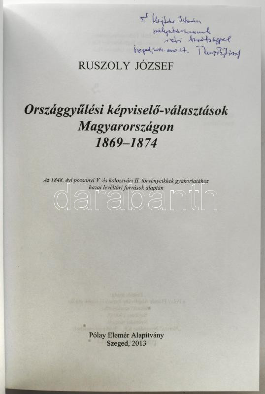 Ruszoly József: Országgyűlési képviselő-választások Magyarországon, 1861-1868. Az 1848. évi pozsonyi V. és kolozsvári II. törvénycikkek gyakorlata kormányhatósági és hazai helyhatósági levéltári források alapján. Jogtörténeti Tár. Forráskiadványok, értekezések, monográfiák. 2/3: Az országgyűlési népképviselet hazai kezdetei 1848-1874. 3. kiadás. Szeged, 2013, Pólay Elemér Alapítvány, 808 p. Kiadói kartonált papírkötés.